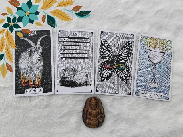 Le Diable — Des liens invisibles, des attachements ou des schémas de pensée me retiennent. J’ai la sensation d’être coincé dans une boucle, empêché d’avancer ou de m’exprimer pleinement. C’est comme si une part de moi restait prisonnière de vieux schémas.