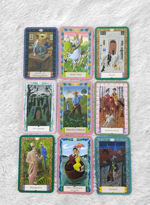 Cartes : (19) Deuil – (34) Travail – (4) Rencontre